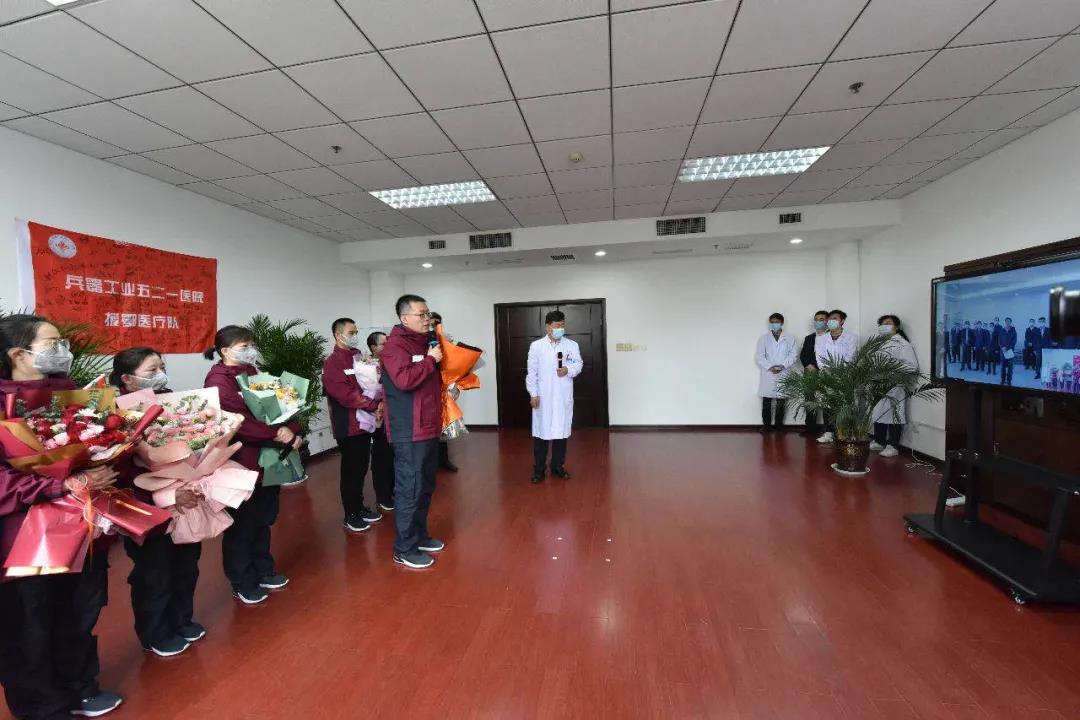 焦開河指出,面對(duì)突如其來的新冠肺炎疫情的嚴(yán)峻考驗(yàn),521醫(yī)院7名援鄂醫(yī)療隊(duì)隊(duì)員堅(jiān)決響應(yīng)習(xí)近平總書記和黨中央號(hào)召,肩負(fù)集團(tuán)公司黨組和全集團(tuán)23萬干部職工的重托,聞令而動(dòng)、挺身而出,奔赴抗擊疫情第一線。援鄂期間,杭博、郭苓、緱豪兵、楊嬌4位同志,充分發(fā)揮了共產(chǎn)黨員的先鋒模范作用,呂戈、侯永生、曹利娜3位同志火線入黨,不辱使命、不負(fù)重托,出色完成了任務(wù)。7位同志的辛勤付出,充分體現(xiàn)了“把一切獻(xiàn)給黨”的人民兵工精神,體現(xiàn)了大愛無疆的醫(yī)者仁心,體現(xiàn)了集團(tuán)公司大國(guó)頂梁柱的責(zé)任擔(dān)當(dāng),為黨旗爭(zhēng)了光,為集團(tuán)公司添了彩。全集團(tuán)廣大干部職工要學(xué)習(xí)他們的先進(jìn)事跡,為奪取疫情防控和實(shí)現(xiàn)全年目標(biāo)任務(wù)的“雙勝利”不懈奮斗!