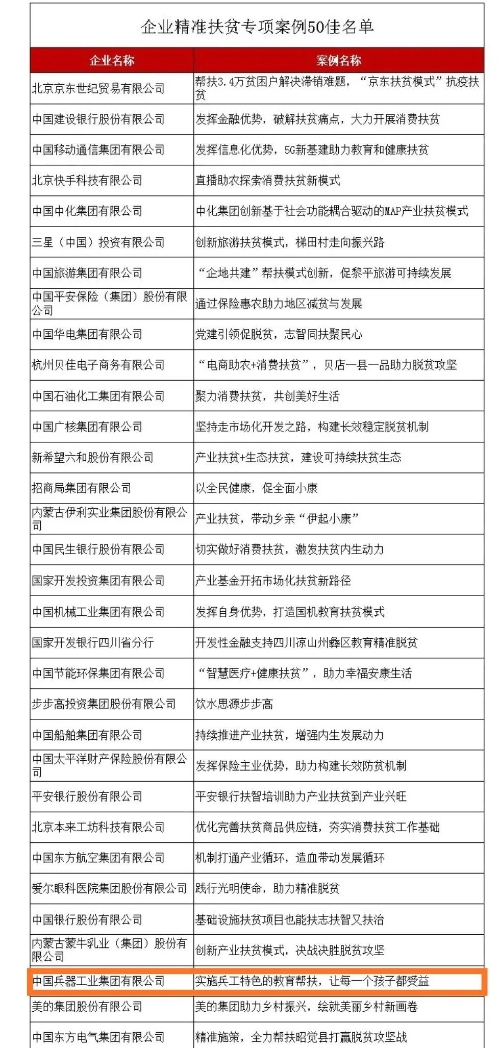 兵器工業(yè)集團(tuán)教育扶貧獲評(píng)國(guó)務(wù)院扶貧辦2020年企業(yè)精準(zhǔn)扶貧專項(xiàng)案例“50佳” |
