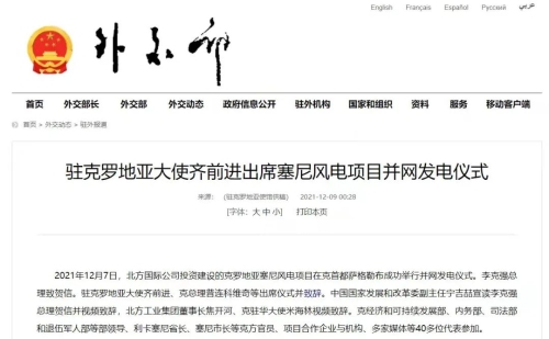 李克強(qiáng)總理向兵器工業(yè)集團(tuán)投資承建的克羅地亞塞尼156MW風(fēng)電項(xiàng)目并網(wǎng)發(fā)電致賀信 |