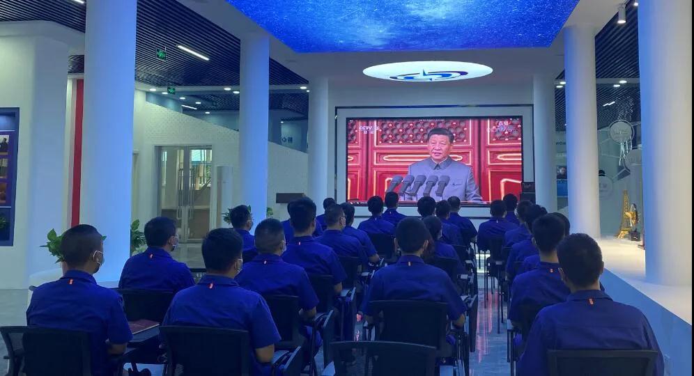 集團(tuán)公司總經(jīng)理、黨組副書記劉大山,黨組副書記周艦,黨組成員、總會計師張華,紀(jì)檢監(jiān)察組組長、黨組成員陳學(xué)釧,黨組成員、副總經(jīng)理鄒文超,黨組成員、副總經(jīng)理植玉林帶領(lǐng)總部全體職工觀看慶祝大會,各單位組織機關(guān)干部、科研人員、車間工人等通過集中收看、電視、電腦、手機網(wǎng)絡(luò)等方式觀看慶祝大會。