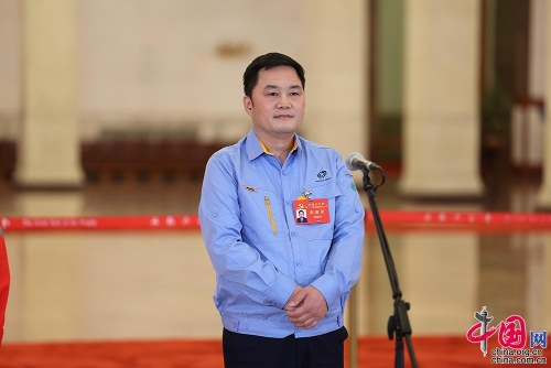 10月22日,二十大“黨代表通道”第二場采訪活動在人民大會堂舉辦。圖為中國兵器西北工業(yè)集團研究院試制分廠鉗工高級技師張新停。中國網(wǎng)記者 董寧 攝