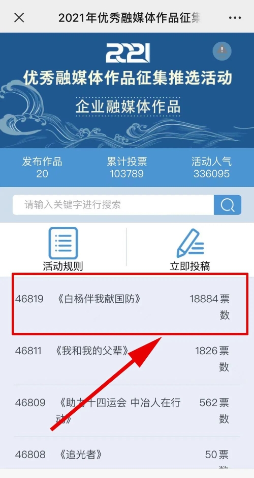 近日,由“文化強國”光明日報協(xié)同推廣平臺、光明網(wǎng)、北京師范大學新媒體傳播研究中心和光明天翼5G融媒實驗室共同主辦的“2021年優(yōu)秀融媒體作品征集推選活動”開啟線上投票環(huán)節(jié),經(jīng)過專家委員會評審,中國兵器工業(yè)集團北重集團《白楊伴我獻國防》音樂MV入選活動前二十名,并進入網(wǎng)絡投票環(huán)節(jié)。 《白楊伴我獻國防》 楊樹參天 高聳云端的是兵工人 “履行好強軍首責”的壯志凌云! 深植北疆 傾獻沃土的是北重人 “推動高質(zhì)量發(fā)展”的壯志豪情! 白楊樹伴著我們茁壯成長 見證著我們獻身國防! 投票方式 1.掃描下方二維碼,進入初始界面,點擊“企業(yè)融媒體作品征集”,進入投票界面點擊《白楊伴我獻國防》,點擊“投TA一票”; 2. 每人每日可投10票,直至提示投票達到上限即可; 3.投票時間:2022年3月17日09:00-2022年4月2日17:00。 來源/光明網(wǎng)、北重集團 |